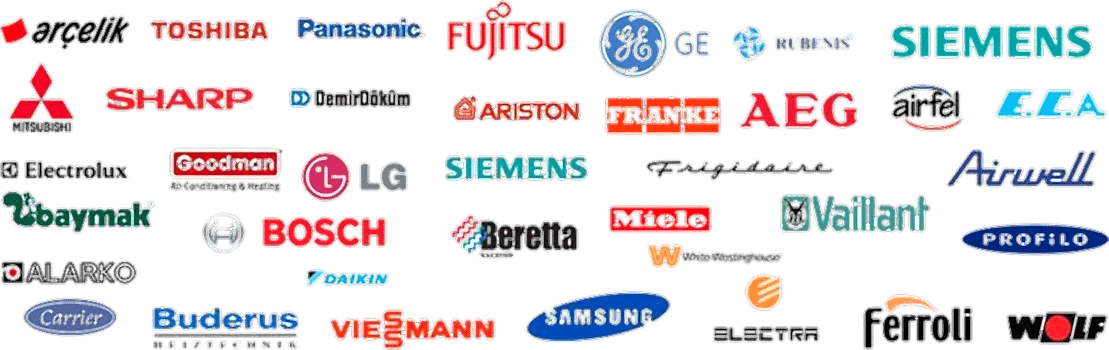 Tronic, Samui, Mitsubishi, Arçelik, Beko, Daikin, LG, Vestel, Airfel klima servisi, Bosch, Sharp, Ferroli, Siemens, Samsung, Alarko, inverter, Profilo, Mitsubishi, Toshiba, Baymak klima servisi, Viessmann, Sigma, Demirdöküm, Sunny, Elektrolüx, Vaillant, Fujitsu, Baxi, Diamond Elektric, Regal, Fuji Electric, York, Panasonic, Kelon, General Elektric, Seg, Rubenis, VRF, Altus, White Westinghouse klima